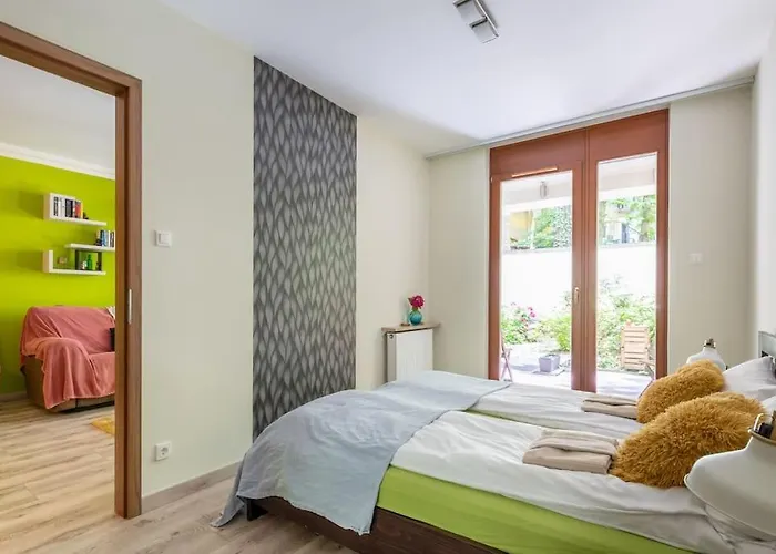 A Charming Apartment With Quiet Garden In Downtown Budapest 2 km-re fekszik a Hősök terétől és hozzávetőlegesen 350 méterre a Bajcsy-Zsilinszky út metróállomástól. Az apartman 1 km-re található a Nyugati vasútállomástól és belátható közelségre az Akacfa utca buszpályaudvartól.